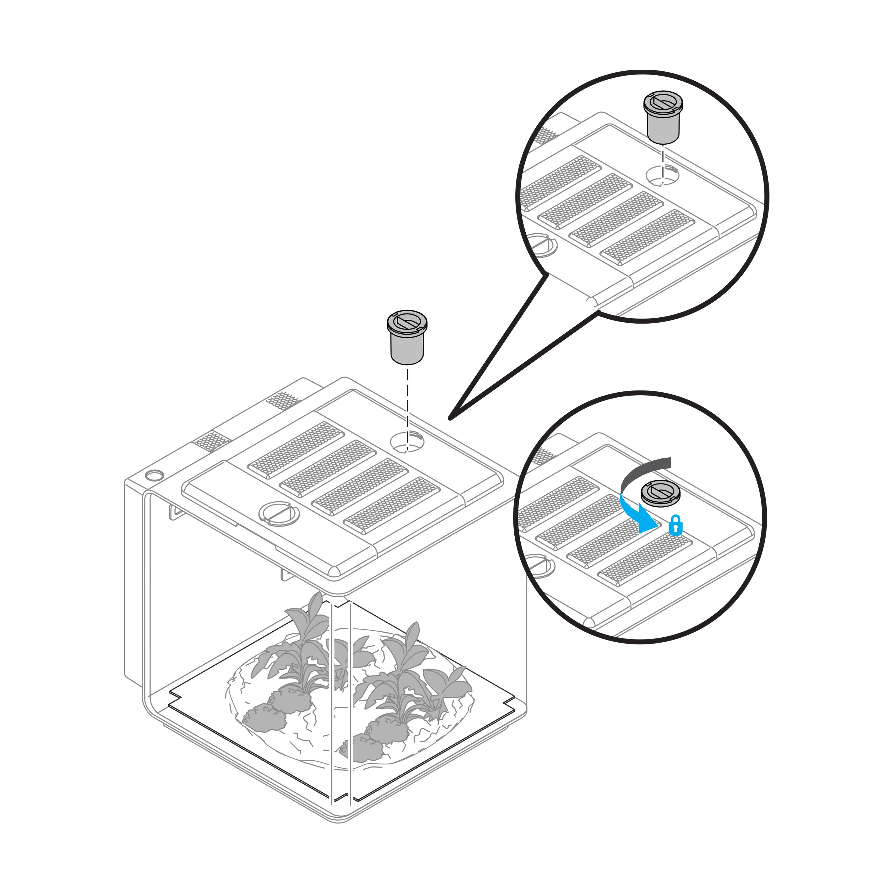 - Put the food in the feeder, insert it into the EARTH lid and turn the feeder until it opens