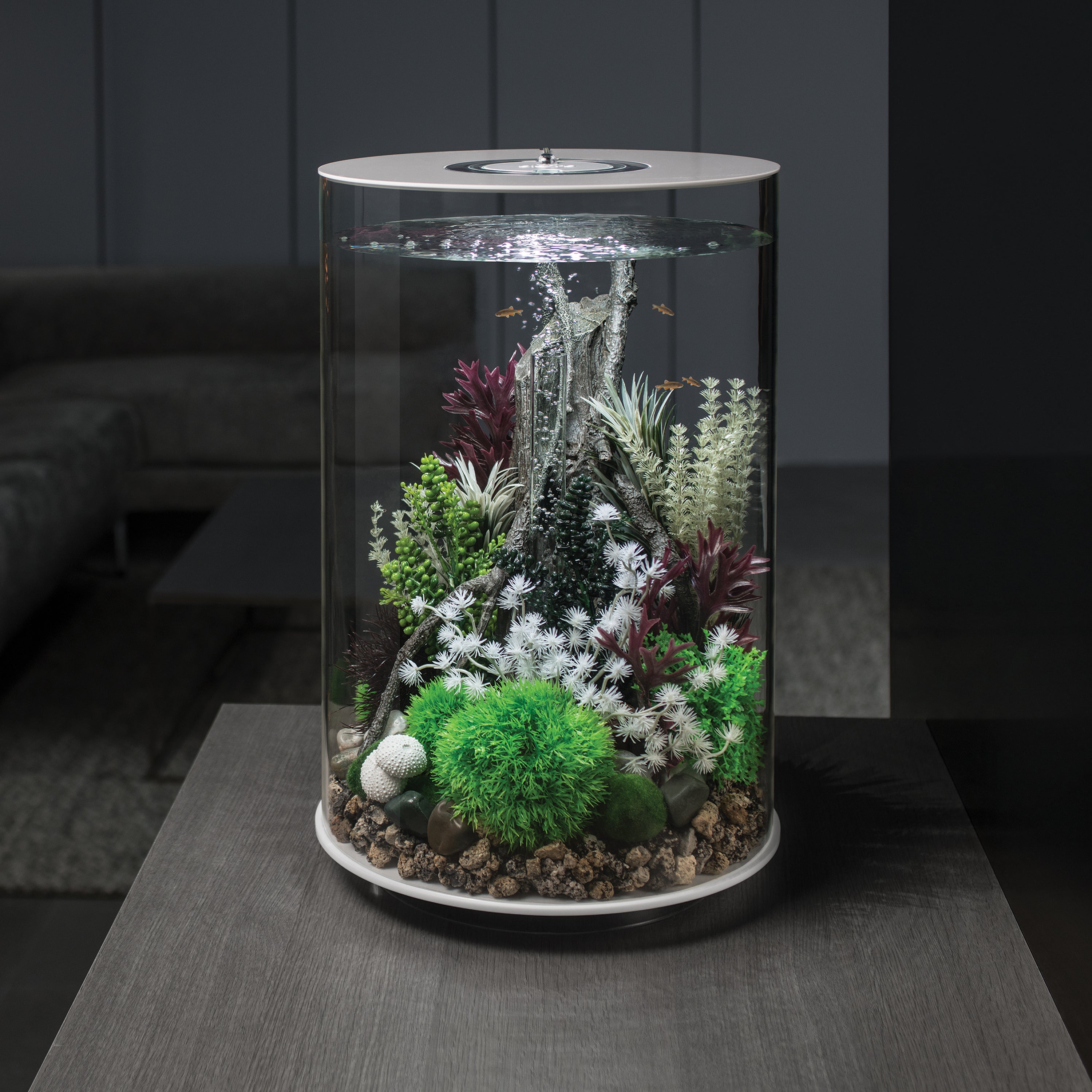 So minimal it hardly appears to be there. The biOrb TUBE gives you a great space to aquascape without the visual interference of joins or corners found in traditional aquariums. If you like a true 360° viewing experience the biOrb TUBE is the perfect choice.